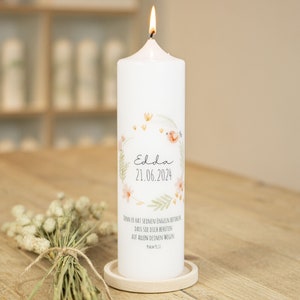 Christening Candle Modern Flowers Edda My Baptism Flower Etsy
