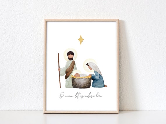 Watercolor Nativity Christmas Printable Holy Family Etsy Israel