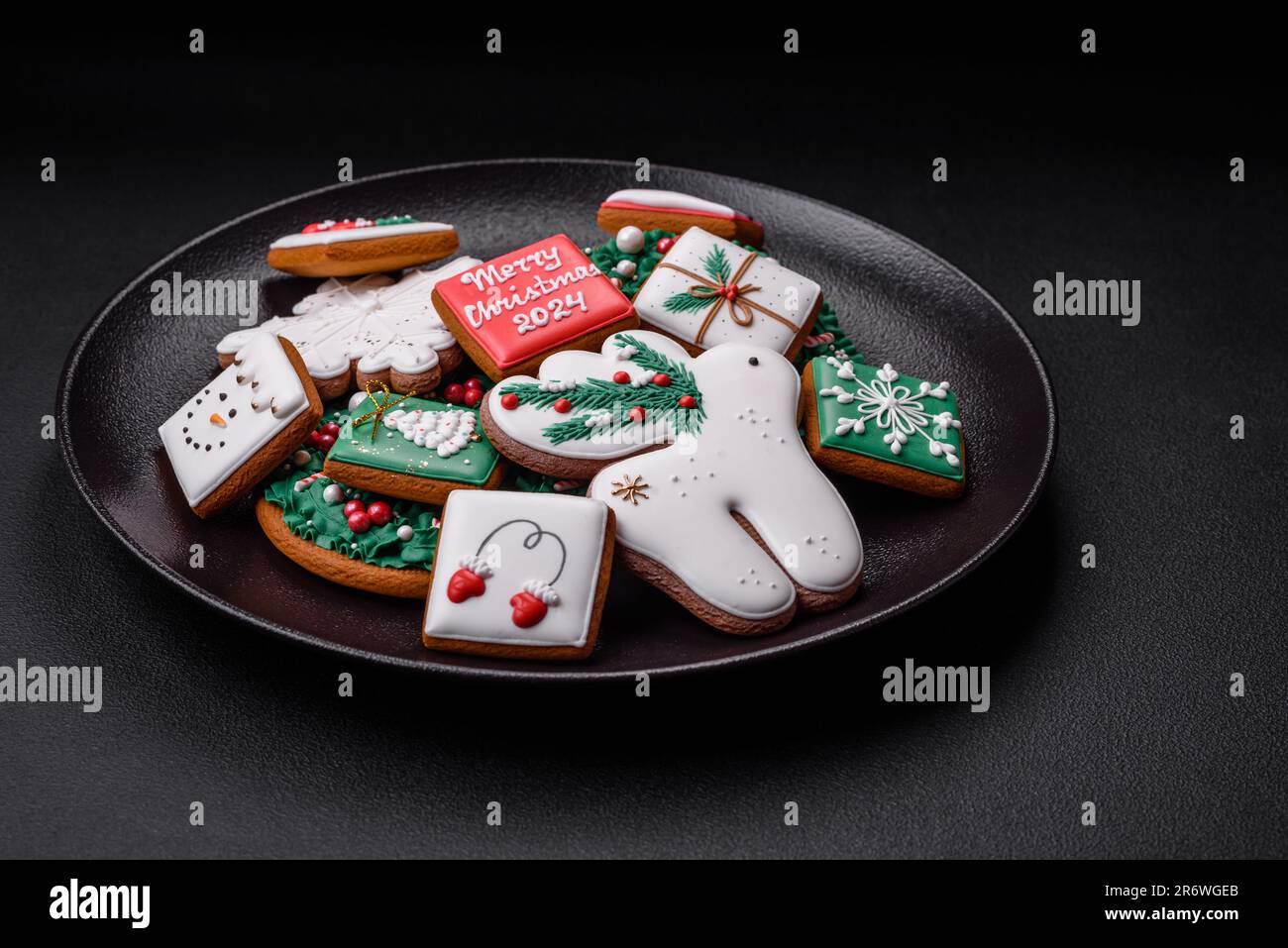 Delicious fresh colorful Christmas or New Year gingerbread cookies