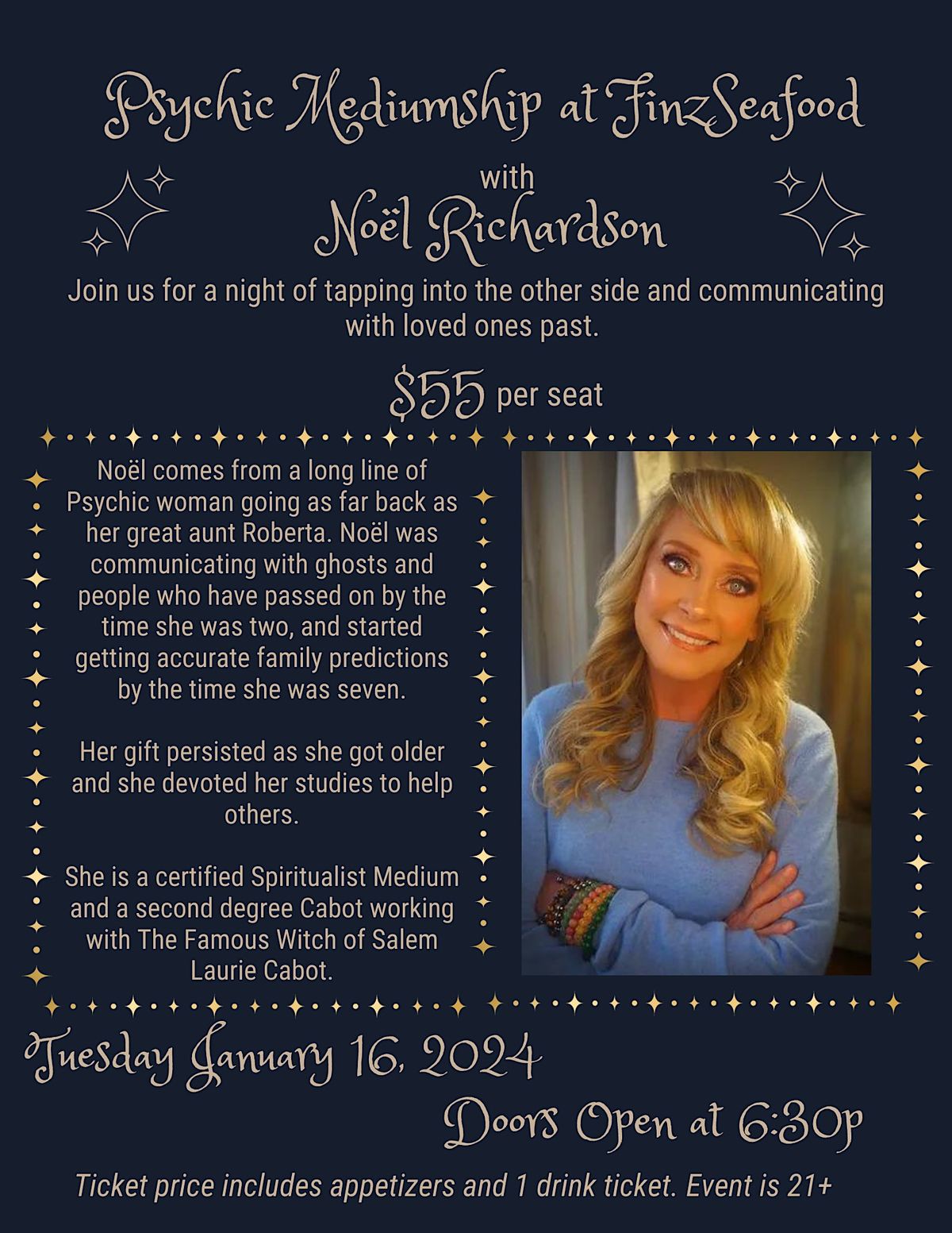 Psychic Mediumship at Finz Seafood with Noël Richardson Tickets