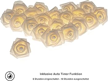 CozyHome LED Fairy Lights, White Roses, 5 m, 20 Flowers, Warm