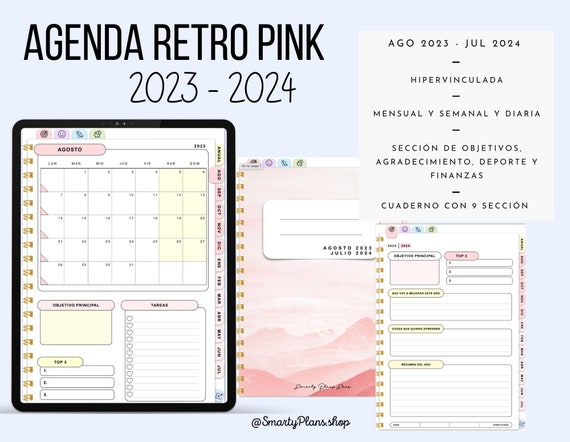 Retro Pink AGENDA DIGITAL De Agosto 2023 a Julio 2024 PDF Etsy