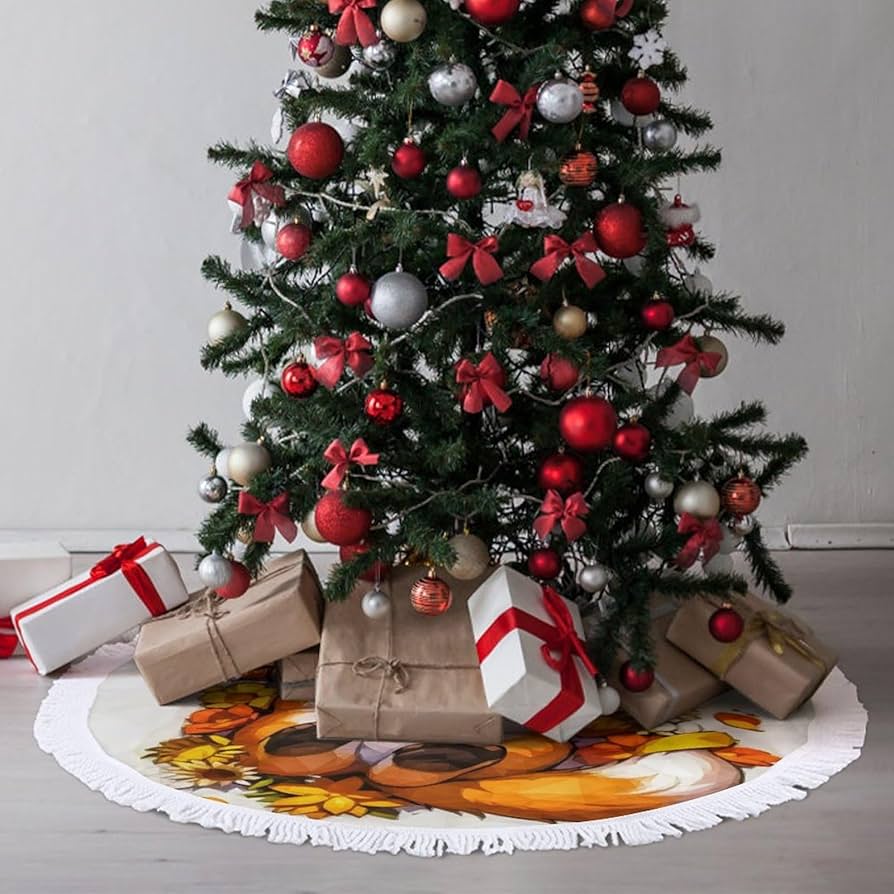 Amazon.com: MoBlinko Cute Cartoon Fox Tree Skirt Autumn Flowers